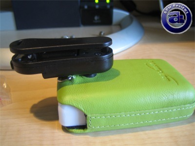 Inside our review unit's box is a Sea-Green Designio leather case for lime-green Zen Micro 6GB, detachable belt clip with attachment screw and a reusable black bag that's made out of generally good quality, synthetic mesh cloth-like material. I chose Sea-Green because it goes in nicely with my lime-green Zen Micro 6GB, and aesthetically speaking, it really does go together well.