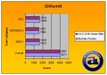 Why did the Buffalo Firestix perform better in 3DMark06? It's a good question -- as the RAM defaults to lower latencies. It is still a statistical tie as the performance difference is within the error margin.