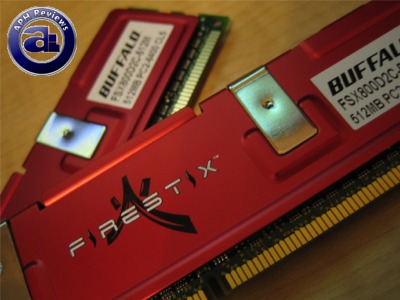 Nice looking RAM -- quite unique red heatspreader with white printed text, in my opinion. At manufacturer's stock specifications, I can say that the performance is not very competitive at all. However, what really sets the Buffalo Firestix above the competition is its impressive ability at running beyond manufacturer specifications. The lowest latency I was able to achieve with my kit was 4-4-3-11; while at stock latencies of 5-5-5-15 the Buffalo Firestix ran comfortably at 510MHz from 400MHz with absolutely no issues at all. The Micron D9GMHs are excellent memory chips -- and that makes the Buffalo Firestix an impressive RAM kit as well. The only problem -- and quite a significant one -- that I can see so far is that Buffalo's Firestix aren't readily available in countries such as Canada. What's more, checking major online retailers in the USA, it seems that not many of them carry this product; in addition to that, there's nothing more beyond the 1GB set despite the fact that the company sells 2GB kits as well according to their site. Since 2GB (2x1GB) is pretty much the enthusiast standard nowadays, the availability is quite a concern as it is hard to meet enthusiast requirements. In conclusion, I can confidently say this is really great RAM for your money. Assuming you can find a set at the capacity you want, that is.
