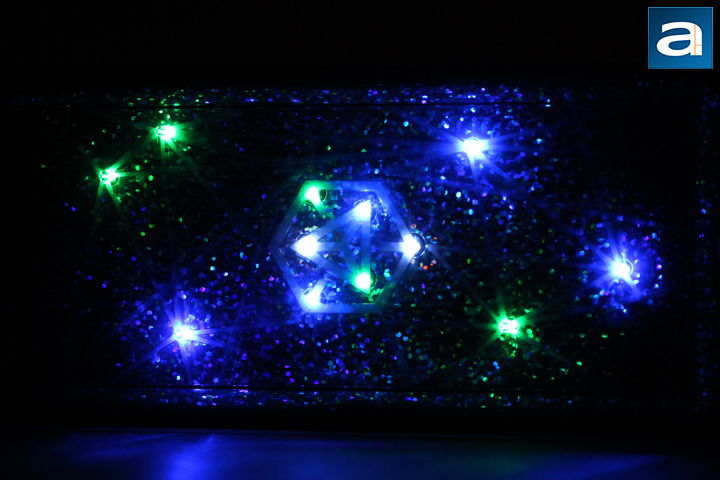 While other power banks may be designed with purely functional motives, the cheero Ingress Power Cube brings some nice aesthetics to the table too. As mentioned before, this product is produced as an officially licensed product of Ingress, thus some design choices are borrowed from the video game. Powering on the device will let you see the true colors of the Ingress Power Cube. Six LEDs are located in the middle, lighting up the Ingress logo. Pressing the circular button, as mentioned prior, changes the lighting modes. It cycles through different colors for the logo, to make it either all green, all blue, or a mix of green, blue, and white. Holding the circular button down turns on six more LEDs, which are around the rest of the block. These twelve lights operate in a semi-random breathing mode, with different lights pulsing on and off, to make for some pretty neat effects. In addition, there are four white LEDs located right by the Ingress marking on the front to indicate the power level of the device. It is nice to see this as it is helpful for giving users feedback about the internal battery of the Ingress, whether it is charging up, or used for charging other devices.