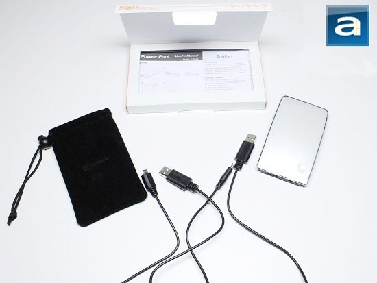 The accessory box houses two USB cables, an instruction manual/mini-guide, and a carrying bag. If observed closely, the inside of the carrying bag is conveniently partitioned into two sections -- one side for your Power Fort, and the other for your cables. The carrying bag is provided so Power Fort users do not have to worry too much about having all their cables separate from the charger itself. When purchased at retail stores, the Power Fort is also available in two different colors: one in black, and the other one in white. Our particular unit turns out to be white in color, which looks pretty for those who like to own good looking products (I mean, who doesn't? :P - Editor). The black one, however, looks very slick as well. The Power Fort also comes in two versions: Standard and Advanced. Like the one used in this review, the Standard version simply has one carrying bag and the two USB cables. The Advanced version provides the consumer with an extra car adapter in addition to other miscellaneous international heads for outlets if you're planning to travel outside the country with the portable charger.