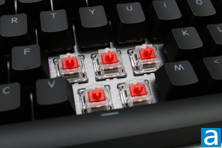 After setting this keyboard up, and customizing the switches to show it off in full RGB glory, I was able to appreciate its overall design. All the LEDs reflect slightly off the brushed aluminum backplate, creating a really cool look. Otherwise, when it came to using it, it was a pleasant experience. Even though I am used to Cherry MX Red switches, since they have for a long time been my daily driver, the Gateron switches are quite good, but also different. They require slightly less force for actuation and therefore produce an overall lighter experience. However, I feel like they lack a certain crispness to them. They feel slightly squishier, but only when I am directly comparing them to the Cherry MX Reds. Squishiness may not be the exact right word, but maybe slightly less taut is a bit more accurate. Overall, I definitely enjoyed using them and my preference is torn between these or the classic Cherry MX Reds. Ultimately, it will come down to the user's choice.