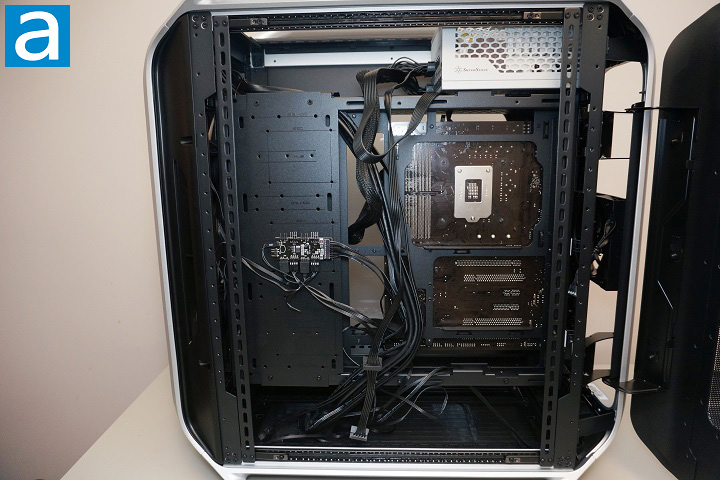The rest of the installation process went very smoothly. The case already comes with several fans preinstalled, including the two large 200mm intake fans at the front and a rear exhaust fan, so there was no immediate need to add additional fans from my spare parts. Routing cables was also easy thanks to the numerous openings around the motherboard tray. Even thick cables such as the motherboard power connector could be easily passed through the grommeted openings without much effort. Due to the sheer size of the COSMOS ALPHA, many cable routing holes remained unused even after completing the build, which further highlights how spacious this chassis really is.