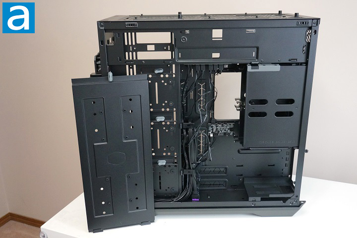 Generally speaking, the interior design of the Cooler Master HAF 700 is very good. All of the components you need for building a computer can be nicely accommodated and kept cool. The paint job quality of the interior is also good. More importantly, there is tons of room to mount large radiators, and there are big openings to allow easy connections between the power supply and the rest of the components.
