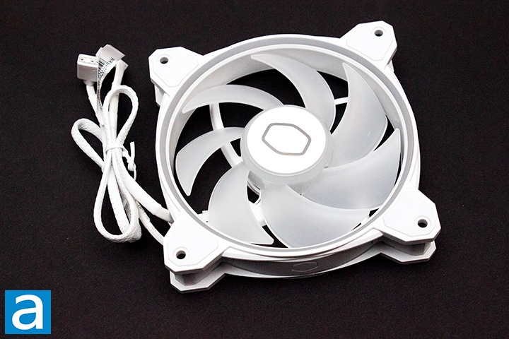 Moving on, the material used to build the heatsink is not the only factor in lowering temperatures, but the fan used is another essential aspect of this cooling solution. The Cooler Master Hyper 212 Halo White uses a 120mm MF120 Halo². The maximum rated airflow of the MF120 Halo² is 51.88 CFM and the maximum rated air pressure is 2.89 mmH2O. Note that CFM stands for cubic feet per minute. On paper, the CFM does not seem high, but let us see how this fan will actually perform in the testing performance on the next page.