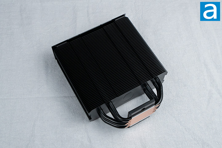 Considering the dimensions of the Hyper 212 Pro, it falls into the common category of 120mm coolers, which should fit in most mid-tower ATX cases. It measures 125mm in length, 74mm in width, and 152mm in height including the fan. After a few attempts, I counted there to be fifty aluminum fins. They are mostly separated by 2mm from each other with some slight deviations. I calculated the total surface area of the fins to be about 0.52m2 with some rough measurements, ignoring the thickness. Looking between the fins, there are eight optimally spaced heat pipes passing through all of them. There are actually only four pipes, but its U-shape effectively makes it eight pipes. Fan mounting clips are used to attach the fan to the heatsink, which is a simple and cost-effective method many CPU air coolers utilize. The weight of the Hyper 212 Pro including the fan is about 608g according to my scale. Without the fan, it comes in at 434g.
