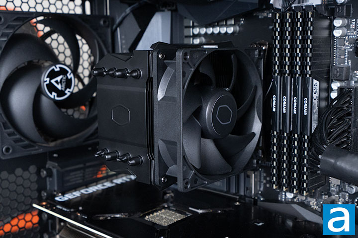 The installation steps in the Hyper 411 Nano's manual are short and simple. For my AMD CPU, I started by screwing the brackets onto the heatsink. Next, I applied the provided thermal paste onto the CPU and screwed the heatsink onto the AMD stock backplate. The thermal paste is not the usual Cooler Master CryoFuze, but rather a stickier and more viscous compound. I am not the biggest fan of this compound, since the stickiness makes it more difficult to separate the heatsink from the CPU.
