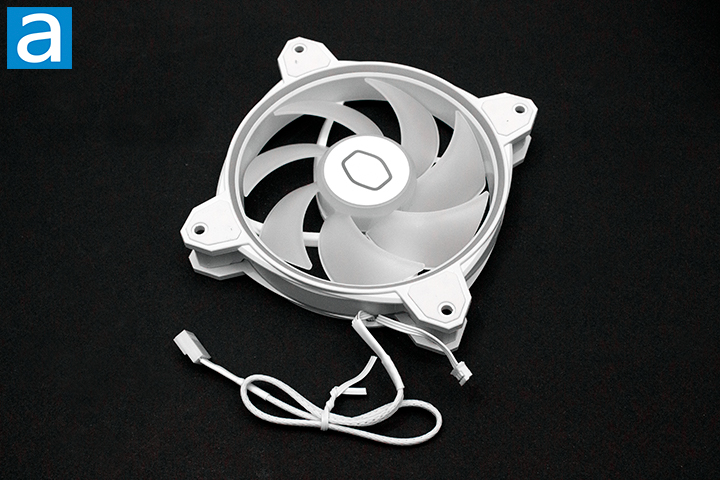 Moving on, the material used to build the heatsink is not the only factor in lowering temperatures, but the fan used is another essential aspect of this cooling solution. The Cooler Master Hyper 622 Halo White uses a 120mm MF120 Halo². The maximum rated airflow of the MF120 Halo² is 51.88 CFM and the maximum rated air pressure is 2.89 mmH2O. Note that CFM stands for cubic feet per minute. On paper, the CFM does not seem high, but let us see how this fan will actually perform in the testing performance on the next page.