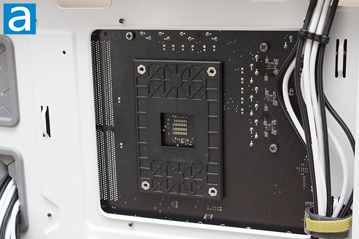 After placing the backplate in place and installing the mounting brackets to the backplate, you will be ready to install the Cooler Master Hyper 622 Halo White. There are several ways to install the brackets, as the cooler is compatible with both AM4, AM5, and LGA socket CPUs. The center fan must be installed after the heatsink in all cases, as the fan will get in the way of screwing down the heatsink.