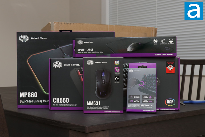 Today's review unit of the Cooler Master MasterAccessory MP510-L arrived from Cooler Master's offices in Brea, California. Traveling with FedEx and their ground service, this shipping container arrived in excellent condition with no real blemish to be concerned about. Inside, Cooler Master has packed a whole lot of stuff other than just the MP510-L, as you will see soon enough. These different peripherals, including the Cooler Master CK550 and MasterMouse MM531 have already been covered by my fellow editor Ben Joubert, and the rest will be looked at in the following weeks.