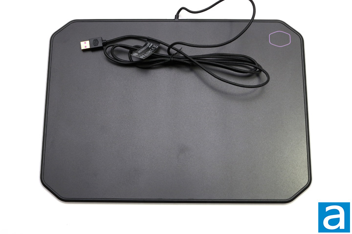The Cooler Master MasterAccessory MP860 has two sides that can be used. I found this to be a really cool concept, even if someone has a preference to one side. Anyway, the cloth side is made for speed according to Cooler Master's website. It provides a smooth surface for the mouse to slide on, ensuring a user can quickly flick from one side to another with barely any friction to speak of. We see things a bit differently here at APH Networks, but we will give credit to the manufacturer. The overall design is good with the RGB LED found around the edges of the mousepad. In the top right on both sides, there is a Cooler Master logo. However, the cloth side has the top right cutout with a full-fledged Cooler Master logo, while the other side has the minimalist Cooler Master logo in purple. Both look great and fit with the style on each side. The cutout on the cloth side is surrounded by a slightly raised rubber ring.