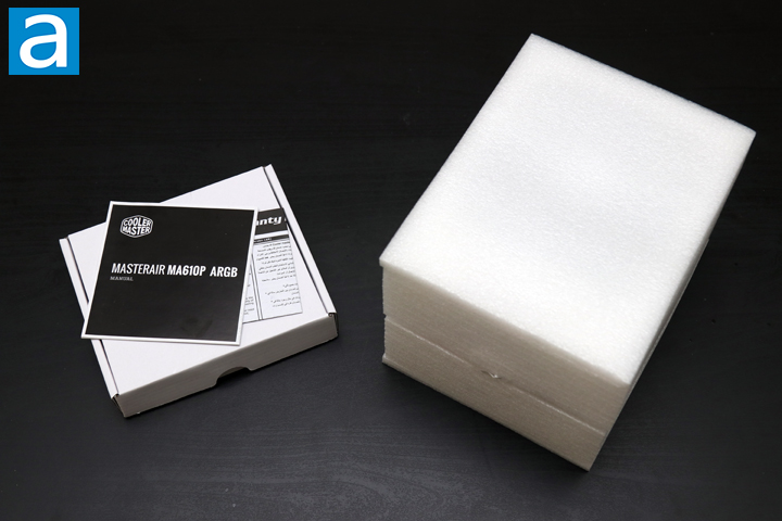 The Cooler Master MasterAir MA610P ARGB is packaged into two separate containers inside the retail box. The first is made up of two large foam brackets with the MA610P ARGB wedged in between. This should cushion any impact or fall damage that may occur while the box is in transit. A flat white corrugated box holds all of the mounting hardware to fit Intel's LGA2066, LGA2011-v3, LGA2011, LGA1200, LGA1366, LGA115x and AMD's AM4, AM3+, AM3, AM2+, AM2, FM2+, FM2, FM1 sockets. Depending on which socket you are using, it will affect which hardware you use, but Cooler Master also includes instructions for installation on all of the above sockets. The only recent socket that is missing from the list is AMD's TR4 socket, but this makes sense when you consider how much larger the heatspreader is on AMD Threadripper CPUs.