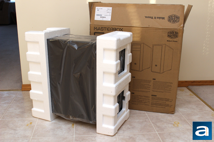 Grabbing a pair of scissors, I hacked open the box and slid out the Cooler Master MasterBox 5. The chassis itself is wrapped in a plastic bag to prevent any surface scratches in transit, while held in two large foam brackets for protection from larger damage. Other things inside the box is a small bag holding additional accessories, including mounting screws, motherboard standoffs, and quite a few black zip ties. There are also two pamphlets, with installation instructions and warranty information. Just for your information, two years of warranty is included with the Cooler Master MasterBox 5.