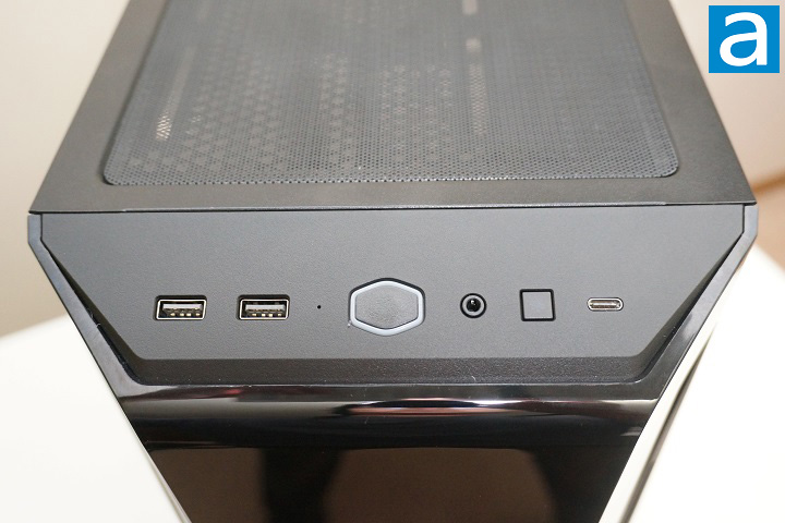 There is an angled surface between the top panel and the translucent part of the front panel where all of the front I/O ports and switches are located. Note the power switch is located in the middle and has the shape of the Cooler Master logo. Interestingly, the small reset button is not right next to the power switch. Instead, it is actually on the right side of the audio jack. The reset button can also be used to control the addressable RGB lighting, which is pre-routed to the included ARGB controller. For the front I/O ports, we get two USB 3.2 Gen 1 Type-A ports and one USB 3.2 Gen 2 Type-C port. The single audio/microphone jack is another nice feature of this product. For most of us, we have both laptops and desktops, and laptops are commonly equipped with a single audio/microphone jack only. When we buy a headset, we definitely want something that can be used on both laptops and desktops, so it will be inconvenient if we have to deal with the situation where the laptop has a single jack while the desktop has a dual jack. I do acknowledge many gaming headsets come with a separate headphone and microphone plug, so it could be inconvenient to some. An included Y-split cable will rectify this situation.