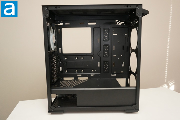 From the above photo, it can be seen the case has openings for up to three 120mm fans or two 140mm fans mounted in the front. For cooling performance, this case can accommodate decent cooling solutions. For example, you can have a 360mm radiator mounted on the top panel, and if you somehow have another 360mm radiator, that can go on the front too, haha. That aside, you can really have a lot of fans installed. If you really want some fancy looking cooling solution, three ARGB fans can go behind the front panel. The lightly tinted tempered glass side panel will allow the light to be emitted through.
