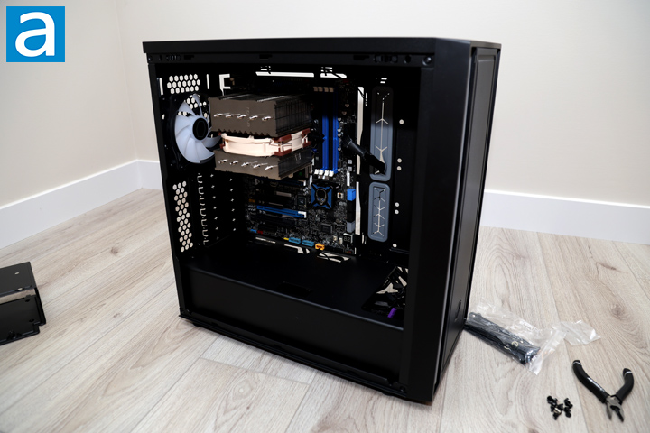 As for cable management, I did not do much more than moving the cables to hide in the basement. There are some tie-down points around the back, but these are rather limited in number and spacing. I would have liked to see a few more, but part of the issue stems from so much of the backplate being cut out for access to possible connectors behind the motherboard. Nevertheless, there are a sufficient number of routing holes to pass the necessary cables at the right places. My overall building experience was quite positive, even if it feels like a budget-friendly case. The process was straightforward, and the lighter case made it easier to maneuver around.