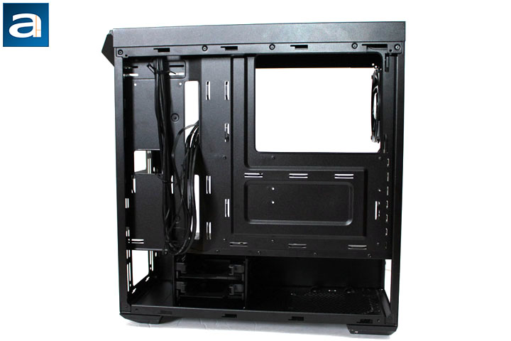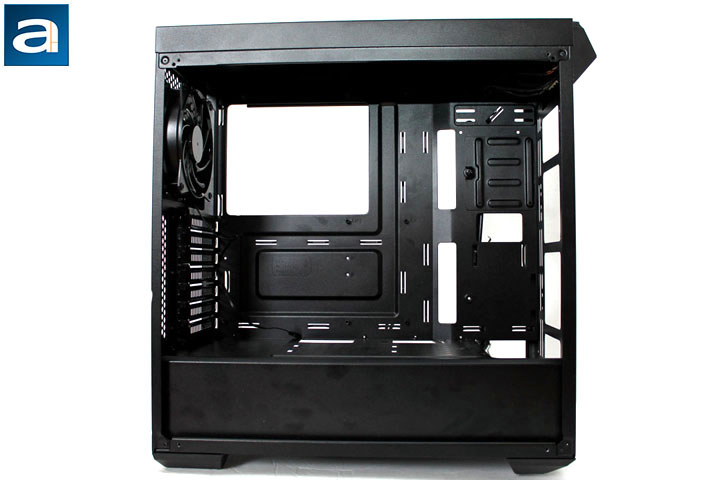 The front of the Cooler Master MasterBox Lite 5 is well planned. As seen, the standard 120mm fan is pre-installed by Cooler Master, as is the case with most Cooler Master designs. The motherboard opening has plenty of space, and as mentioned previously, can hold up to ATX sized motherboards. The smaller case size does leads to some drawbacks that may dissuade some users from considering it. The interior of the case has a lot of space for fans. Three intake fans can be mounted on the front, but nothing above the motherboard. It is important to point out the MasterBox 5t and MasterBox 5 both has room for fans on the top as well. The Cooler Master MasterBox Lite 5 has plenty of capability for intake, but is missing the two fans on the top for those who want it. This is certainly not a deal breaker for me, but it may be for some people.