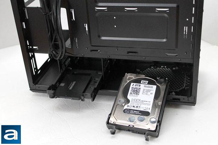 Next, I installed the hard drives into the Cooler Master MasterBox Lite 5 drawer system of the case, which utilizes the same system as in previous designs, but the actual installation of the 3.5” drives is simpler than ever to install. The shelves, when taken out, expand with a small clip on the bottom. Then, the 3.5” drive is placed inside, the shelf closes perfectly into the holes on the drive, and is inserted into the drawers. It does not get simpler than this, and was the easiest part of any installation that I have performed. The 2.5” drive still requires screws and a screwdriver to secure it properly to the shelf, but is very straightforward. There is no suggested orientation provided concerning installation of the drives, allowing for greater flexibility regarding cord management.