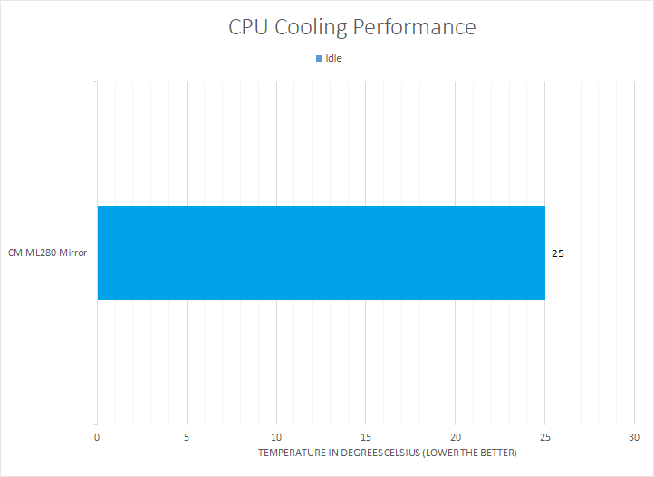 For the first test, I let my computer sit idle for a while. After about an hour, I shook my mouse to wake my computer up. We can see the liquid cooler maintained the Core i5-12600K at around 25 degrees Celsius, which is a pretty low temperature. While this is a good start, idle tests do not give a full representation of the cooling capabilities, thus leading us into our load tests.