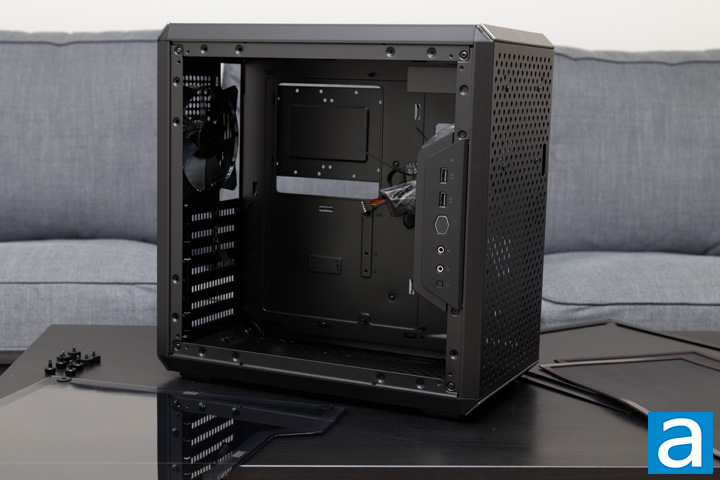 Before continuing, one thing I need to mention is the amount of flex exhibited by the panels of the Cooler Master MasterBox Q500L. The inner frame where the motherboard sits is relatively sturdy, but the rest of the frame and the sides are all prone to bending so you should be careful. While this does keep the case light, I have not really seen steel flex this much in computer cases and this is something I never want to say about a computer chassis.