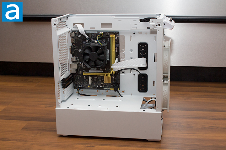 When installing my motherboard, I did not have any issues regarding the standoffs. The standoffs were installed properly and securely. The front I/O was simple enough to route to the motherboard and is long enough to route through the bottom of the shroud with ease. The drive bay used had a unique installation, having proprietary tool-free clips to attach onto your 3.5” drives, allowing you to slide in the drive into place. All you have to do is attach a clip to each side of the drive, then push it into the bay.