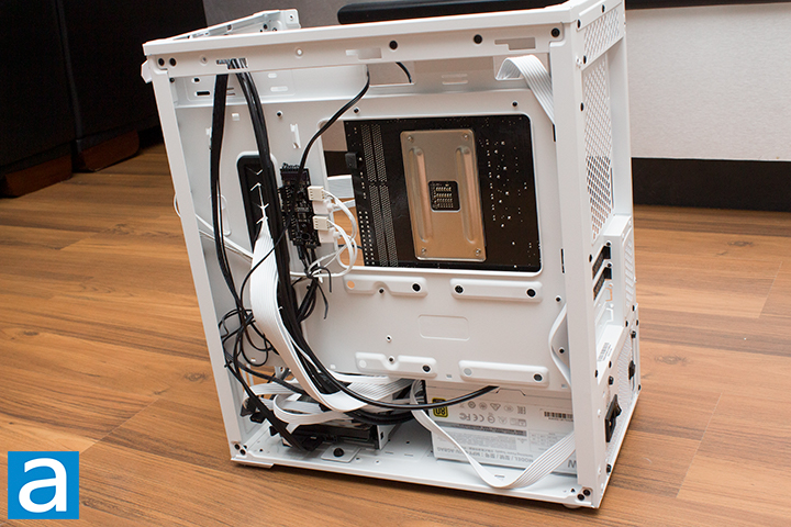 Despite my cable management being slightly rushed and messy, it does not really matter from a visual perspective as the right panel is not glass. In this case, it is still important to try your best, as you do not have much room and should remain organized throughout given your lack of space. The Cooler Master MasterBox TD300 Mesh provides a good number of tie-down points. Routing cables was simple enough using the intended runways, but it was even further streamlined through the ability to remove each panel. By removing all the panels, including the front and top panels, I found the cable routing process to be a lot easier to manage. The cable grommets alongside the motherboard tray makes passing through cables from the back of the case to the front of the case incredibly easy, minimizing the number of visible cables. Despite using a minimum number of components, I did find a bit of difficulty when installing my PSU as it was a very tight fit.