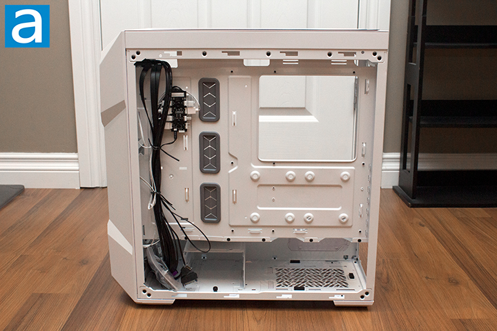 The back of the Cooler Master MasterBox TD500 Mesh V2 looks standard compared to many other cases on the market. The MasterBox TD500 Mesh V2 includes a drive bay capable of holding two 2.5" or 3.5” drives. Two more 2.5” drives can be mounted on the back of the motherboard tray as well. The case does not come preinstalled with Velcro straps, but it does come with an abundance of zip ties. I personally opted to use my own Velcro straps. There are several tie-down points that can be optimally used for clean cable management. The area dedicated to cable management is average, having 19mm of space between the motherboard tray and the right side panel. Being a mid-tower case, cable management can get tricky at times, depending on the number or thickness of the cables, but I generally found it to be adequate.