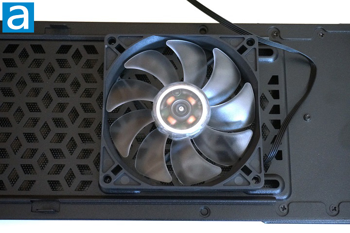 There is one case fan included in the MasterCase EG200. From the product's specification, it is a 92mm slim 2600RPM PWM fan. In terms of size, the 92mm diameter is expected due to the small form factor of the case. According to Cooler Master website's specification table, the installed fan has PWM functionality, which can also be confirmed by the fact the fan connector has 4 pins. However, neither of the two fan headers on the PCIe board has the corresponding header. I am not sure why Cooler Master gives us a fan with PWM while the control board does not have a PWM pinout for the fan. The other thing is, the case supports another 92mm fan, but it is not likely you can get another identical fan from Cooler Master in retail. If you want to have a dual fan setup, you have to buy something non-matching.
