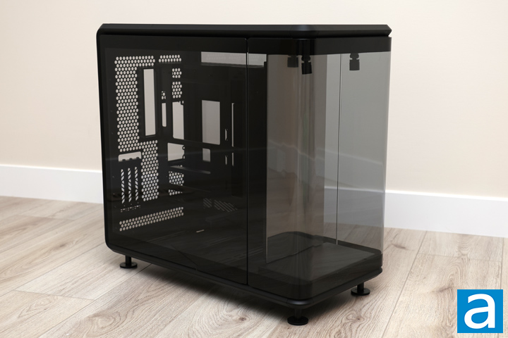 The Cooler Master MasterFrame 360 Panorama is made of SGCC steel and tempered glass. SGCC is short for Steel Galvanized Cold Commercial, which is said to be more resistant to corrosion than the more typical SECC, or Steel Electrolytic Cold Commercial. This results in panels that are solid and do not flex or torque easily. These materials also contribute to the hefty 16.5kg weight. This is explainable given the amount of glass. As for dimensions, the Cooler Master MasterFrame 360 Panorama is 549mm in height, 291mm in width, and 581mm in depth. However, the feet at the bottom are removable. Doing so will reduce the height by 38mm. These measurements are reasonable for a full-tower enclosure.