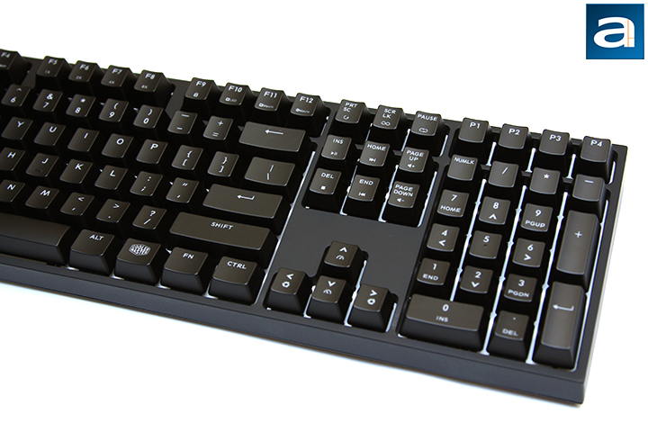 Almost everything here is pretty standard in terms of layout, with a few additions like the four dedicated profile switching keys at the top right corner. I am a big fan of the single row Enter key layout, as present on our US QWERTY Cooler Master MasterKeys Pro L. Keyboards with a double row Enter key usually means the "\" button is moved to the left side of the right "Shift" key; reducing the size of the latter. I am more used to having a full width Shift on the right, and a half height Enter. Obviously, this is more or less personal preference, but having a half height Enter key makes a lot more sense to me.