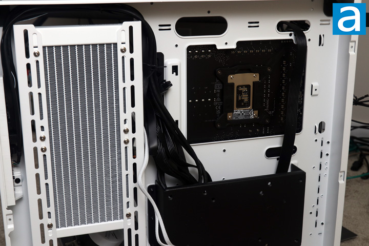 The next step would be to either install the fans and radiator in the case or mount the water block onto the motherboard. I chose to go with the former and mounted my radiator with fans attached to the side of the case first. After mounting the radiator at the side of my case, I applied enough thermal paste, which is included from Cooler Master and mounted the water block and pump combination on top of my Intel processor. Before I did this, I removed the plastic protective sheet on the bottom of the block. Based on the instructions, Cooler Master recommends screwing this in using a cross pattern to ensure even tightening and pressure applied to the processor. As expected, I was able to complete the installation without any issues.