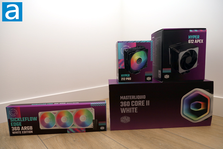 Today's review unit of the Cooler Master MasterLiquid Core II 360 White came from Cooler Master's offices in Chino, California. Traveling with UPS and their Standard ground service, this box arrived in particularly good condition with no dents or bruises to be worried about. You can see Cooler Master has chosen a smart route by reusing one of their product boxes to ship products to us rather than finding a separate shipping container. Otherwise, this box came to our APH Networks location here in Calgary, Alberta. Along with the MasterLiquid Core II 360 White, we also received Cooler Master's Hyper 212 Pro, Hyper 612 Apex, and SickleFlow Edge 360 White Edition, which will be reviewed by my colleagues in the coming weeks.