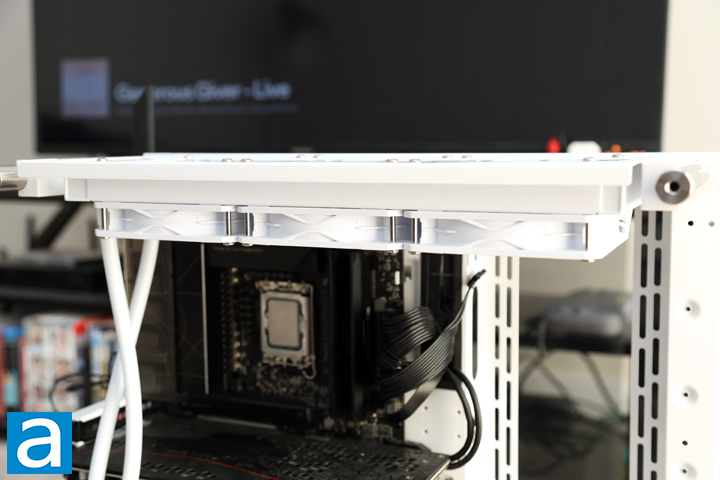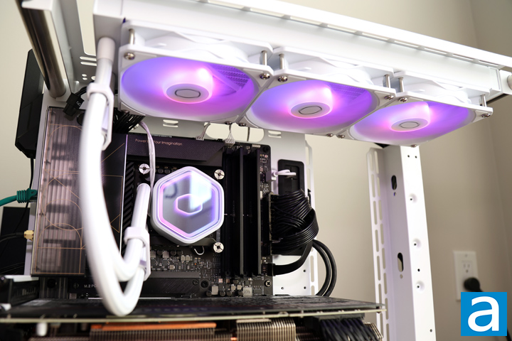 The next step would be to either install the fans and radiator in the case or mount the water block over the processor. I chose to go with the former, and mounted my radiator with fans attached to the top of the case. This is an effortless process, but I do want to stress that you attach the cable to the fans first before mounting the radiator. If you do it after, you will truly have little room to maneuver when it is mounted, as I have experienced personally. While this was clearly a user error, I questioned the detachable cable here, especially since it is proprietary and must be used with these fans out of the box.