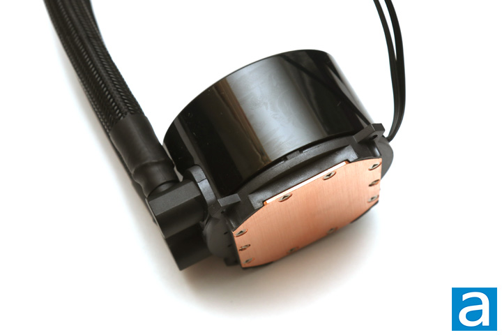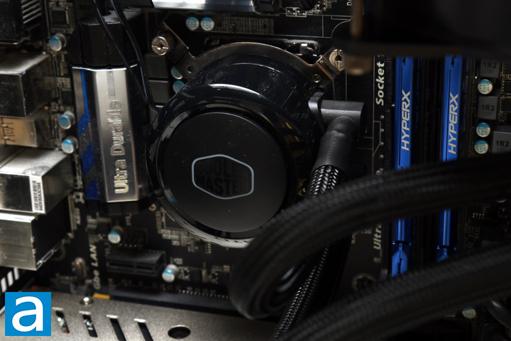 The next step would be to install the mounting screws on both sides of the water block. From here, you can either install the radiator and fans into the case or mount the CPU cooling block in place. Personally, I mounted the radiator and fans first, as it can be quite unwieldy trying to mount the CPU block with a dangling radiator. Next, I mounted the CPU block in place with the provided thumbscrews. Cooler Master includes a small tube of thermal paste to apply to the processor. The last step is to plug all the connectors in place. I connected the power to a fan header and fans to the motherboard.