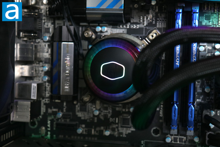 One thing I will highlight is the RGB coloring. Both the water block and the two fans included illuminate brightly, and they are really nice, both in effects and vibrancy. Ignoring the issues we had with the installation of the controller, I will say the lights are pretty and they make for a good look. I also think Cooler Master has nailed the rainbow mode as it does not look as flamboyant as it usually does, but this is just a preference thing.