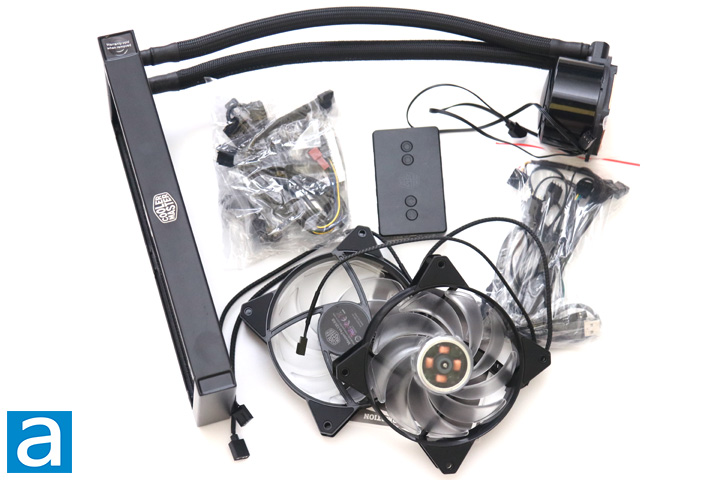 Out of the box, the MasterLiquid ML240R RGB comes with all of the typical accessories you would get with an all-in-one liquid cooler. All the mounting accessories are included to install this onto the popular consumer Intel and AMD sockets. This includes Intel's LGA2066, LGA2011, LGA1366, LGA115x, LGA775 sockets, and AMD's FM1, FM2/+, AM2/+, AM3/+ and AM4 ones. The AMD TR4 socket is not supported due to its much larger size. RGB accessories are also present, including the light controller and all of its wires. Otherwise, there is some documentation and warranty information for the ML240R RGB. Unfortunately, Cooler Master only backs their AIO coolers for only two years, which is much shorter than some AIO coolers, such as the six year warranty from CRYORIG's A80.