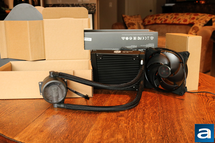 The Cooler Master MasterLiquid Pro 140 arrived in a large brown corrugated shipping box. The product arrived via UPS Standard, and I was not disappointed in the condition of the box. The shipping box arrived in good condition, with only a few small dents on the sides, and the corners slightly beat up. The package arrived all the way from Chino, California to our APH Networks location here in Calgary, Alberta. Enough of the shipping box, let us move on to the actual product.