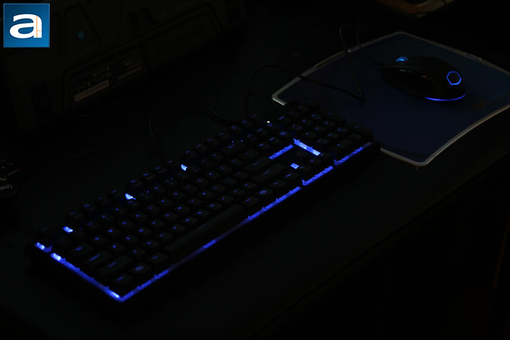 The keyboard of MasterSet MS120 features a unique mem-chanical switch design. Comparing with the other type of mem-chanical switch Cooler Master uses on the MasterKeys Lite L Combo RGB keyboard, this one has more mechanical features. This is because actual springs are used in the switches instead of domes. In fact, for each switch, you can find three springs in total. It is worth mentioning most mechanical switches only have one spring in each one of them. In theory, the keyboard should have a very similar typing experience as real mechanical keyboards. However, despite the fact the keyboard does make clicky sounds and the switches are tactile, the quality of the clicking sound and the tactility is still not good enough to be considered as comparable to real mechanical keyboards. It does feel like as if I were clicking on a retractable pen. Personally, I think the keyboard will be better if it is not clicky, since if I really want a keyboard with good clicky sound, I will just buy a real mechanical keyboard with Cherry MX Blue switches. Furthermore, without the clicky sound, this keyboard can be also used in the office for productivity work. Speaking of the RGB lighting performance, the MasterSet MS120 keyboard is really good. Each key on the keyboard gets an independent LED, therefore the lighting is even across the keyboard. Lighting effects such as the color, lighting mode, lighting zone, and even the color changing speed can be adjusted on-the-fly without any software. The RGB design of this keyboard is really worth showing off at a LAN party.