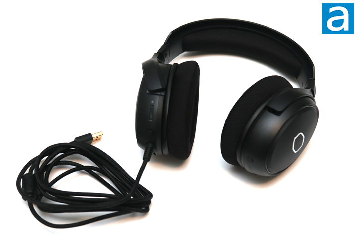 As this is in the same lineup as the MH670, it should not be surprising that the design and appearance of our Cooler Master MH650 is very similar to the wireless edition. Thus, we have a full black exterior with the same exception of the Cooler Master logo outline on each side of the ear. The headset is muted in terms of design with a typical appearance without being too specific for gaming. It does have a translucent ring around the ear to allow some RGB lighting to shine through, but this is pretty much the only thing that gives the MH650 a gamer aesthetic. Otherwise, it is still the same Cooler Master look that I enjoy for a conservative but functional design. The whole shell is clearly made up of plastic with a matte finish to prevent dust from appearing. One big difference we have on the MH650 is the use of fabric on its ears and its headband rather than PU leather. I personally like fabric more, but each have their pros and cons and each affect the audio output differently, as we will find out. The headband and the ear cups are covered in this mesh fabric, while the internal frame and extending arms are built with steel. Everything is held together well with no creaking or unwarranted noises under pressure, which makes me think they reused the same shell and frame in this lineup. Down the left ear, we have another difference on the MH650, which is the USB interface it uses to connect to the audio source. This braided USB cable measures 2.2m in length and stretches quite long enough to work further away from your desktop PC. It has a ferrite bead on the cable near the USB plug at the end. Otherwise, the cable is flexible enough for a gaming headset, but it may still get caught on table edges or corners.