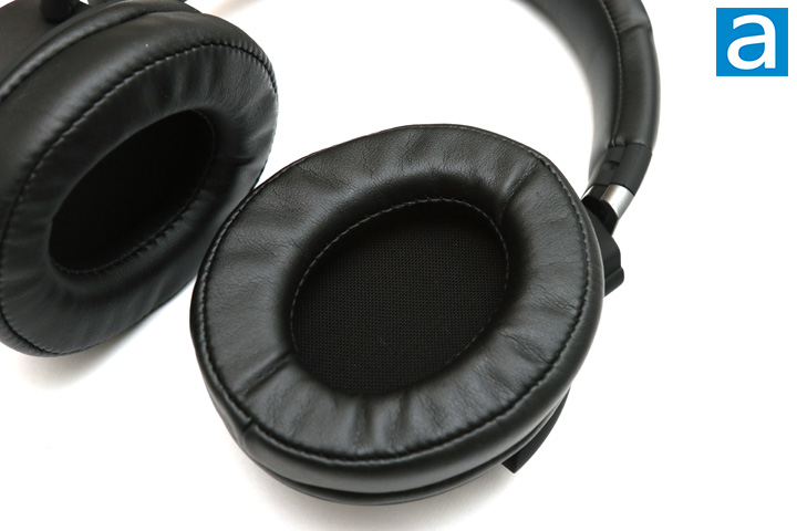 Taking a closer look at the ears, you can see Cooler Master has used an oval shape with a leatherette surface wrapping the ears sufficiently. Underneath this surface, we have a layer of foam that is plush and cushions your ears nicely. A padded fabric can also be found in between the headset and the earcups, which prevent your ears from touching any hard surface. The ears, as you can see, have the ability to rotate with a range of about 125 degrees. It also can tilt around a bit to better mold to the shape of your head. Internally, Cooler Master has used 40mm neodymium drivers in each ear with a frequency response of 20Hz to 20kHz. This should cover the entire audible spectrum for human hearing. In addition, the MH752 has a sensitivity of 97dB with a total impedance of 26 ohms. We will see how all of these play a factor into the audio testing later on.
