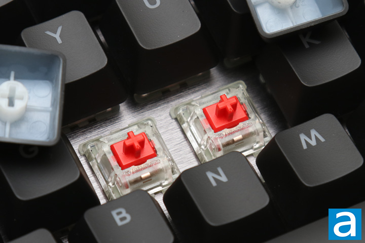 After plugging this keyboard into my computer, I used the Cooler Master MK730 for over two weeks. As these are Cherry MX Red switches, they definitely had the same linear feel I would have expected. I have used these genuine Cherry switches before, and thankfully these deliver. The keystrokes are crisp and clean. It is consistent across all keys, even those with stabilizers. In gaming situations, the keystrokes are light and fast to press. As I used these switches right after testing the thinner but linear switches on the Tesoro Gram Spectrum TKL, I found the travel distance to actually be quite a bit more than expected, but I still think the genuine Cherry MX Red switches are perfectly fine for gaming. Obviously, switch preference will vary, and I would recommend users trying them before committing to a type.
