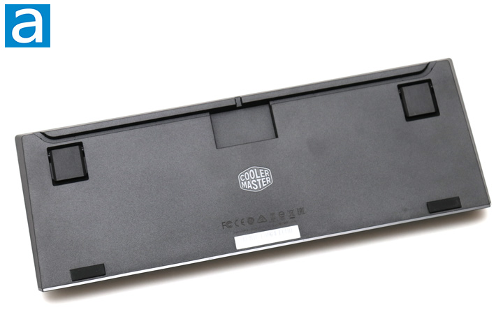 At the bottom of the Cooler Master MK730, we have nothing too surprising. As usual for some of their keyboards, you can see there are routing valleys for the included cable, letting you route the cable out of the middle or bias it towards the left or right side, depending on where you plug your keyboard in. The cable provided is a 1.8m USB Type-C to full-sized USB braided one, which is great to see. The cable is not the most flexible, but it should be okay since you are not moving your keyboard as much as other peripherals like a mouse or a pair of headphones. Otherwise, you can see there are the standard kick out feet at the top and rectangular rubbers on the bottom. The feet are covered in a rubber grip so it provides a non-slip bottom regardless if the feet are extended or not. While it is not pictured here, the wrist rest also has six spread out rubber grips to help with keeping the keyboard in place as well. Otherwise, there are no audio or USB passthrough ports at the back of this keyboard, which could be disappointing if you use these often. I have never touched them when they have been included, so it is not a deal breaker.