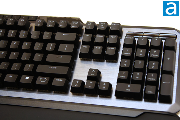 Above the numeric keypad are three buttons to configure and adjust the sensitivity of the Aimpad keys. The Cooler Master MK850 has no dedicated lock indicator LEDs. Instead, the LED backlight for the caps lock and scroll lock button will turn on and off depending on the current lock status. One omission I noticed is the backlight for the Windows key will not turn off when Windows lock is activated. Even more confusing is when the full keyboard lock is activated; everything looks exactly the same. Those who are not familiar with their MK850 could be left wondering why their keyboard stopped working.