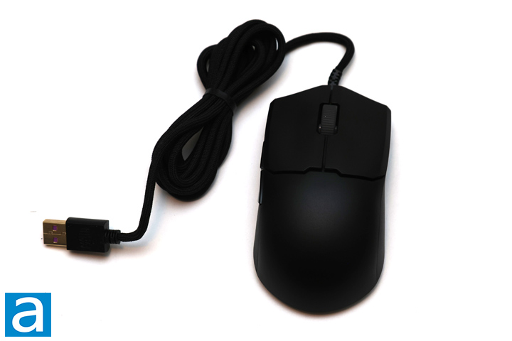 As for its dimensions, the Cooler Master MM712 Wired measures in at 116.5mm in length, 62.4mm in width, and 38.3mm in height. Unsurprisingly, this is the same physical size as the MM712. As such, the peak of the height is slightly closer to the back with a gradual slope to the front and a rounded-out curve at the back. One major difference is the weight, as the MM712 Wired is yet again lighter than the wireless variant, dropping down to around 49g without the cable. This reduction is impressive considering it is lighter than the MM710 circa 2019. The weight is balanced towards the middle. The mouse is ambidextrous in shape, which is good for both left-handed and right-handed users, although the button placement is not. Overall, build quality is quite solid, as we do not have any flex in the shell with its solid back. As the MM712 Wired is made out of ABS plastic, it is lighter than compared to other plastics while generally still being strong enough for its construction. There is a slight bit of creaking when pressing the mouse on the sides, but overall, it is still better than the MM711 and other hole-filled predecessors.