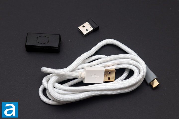 Like most recent Cooler Master wireless mice, the MM712 can operate both in a wired or wireless operation. As such, we still have an Ultraweave USB Type-C to Type-A cable included. This flexible and soft cable is excellent at providing a drag-free experience with your mouse without needing a mouse bungee. It still is one of the best materials I have seen on a cable and no other competitor comes close at providing as resistant-free or light of a cable as this one. Obviously, this matters less considering this is a primarily wireless mouse, but is appreciated for those who use the MM712 with a physical connection.
