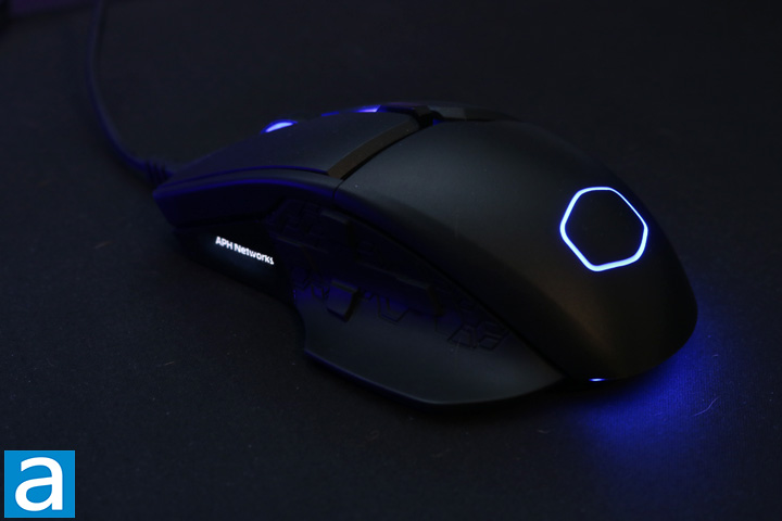 The Cooler Master MM830 is mainly designed for a palm grip, although a claw grip is also comfortable, which is similar to the Rival 600. What is entirely different from the Rival 600, however, is one of the main selling points of the MM830, which is the hidden D-pad. I had mixed results with the D-pad. DOTA 2 was the only game I tested that I was able to program buttons to in game abilities, and only two of the buttons could be programmed. In Overwatch, Rainbow Six: Siege, and Counter-Strike: Global Offensive, I was unable to change any of the controls to be used with the D-pad. I found this to be disappointing, since the D-pad is such a cool addition. One more thing is the buttons are really stiff. They were difficult to press when it was in the middle of the action. Their placement is extremely comfortable, but they are just too hard to press. The rest of the mouse was great. The little thumb rest worked really well, and the Teflon feet kept the mouse gliding on smoothly. As you can see above, I decided to throw up two different pictures to demonstrate the OLED screen capabilities. In the first picture, I put a simple APH Networks on, while in the second, I uploaded the logo as well. When you upload an image, the pen color and background color in the software is mixed up, so you cannot manually fix issues in the image. In the second picture, you might be able to notice the missing pixels in the letters, which was something I could not figure out how to fix, but was not the MM830's fault.
