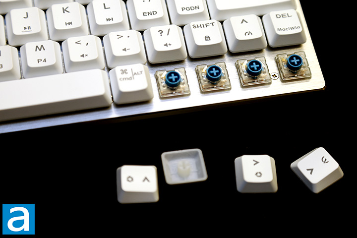 Hitting the Function key along with the labeled Tab through Y, Caps Lock, and arrow keys allow you to do things like cycling through different lighting effects or adjusting the effect speed. One strange omission is the backlight intensity cannot be adjusted on the fly directly. The closest thing you can do is to reduce the intensity of each RGB channel, but this is not an intuitive method. In Windows mode, Fn in combination with S to H are for macros. The J, K, L, ",", ".", and "/" keys double as your multimedia keys with Fn held down, which is a minor key assignment change compared to the SK621. You can even switch profiles, stored on the keyboard's 512KB internal memory, by going through Fn in concert with V to M. Fn in combination with right shift key toggles Win Lock on or off. Win Lock is an important feature in any gaming keyboard, because let us face it: How many times have you tried to duck in your favorite FPS while engaging an enemy, only to be killed instantly, because you missed the "Ctrl" key and your game was minimized? For the Mac users among us, holding down Fn and Del will allow you to toggle between operating systems for specific Mac OS features like screen brightness, Mission Control, Launchpad, and multimedia keys along the top row. Fn + Backspace is also the eject function.