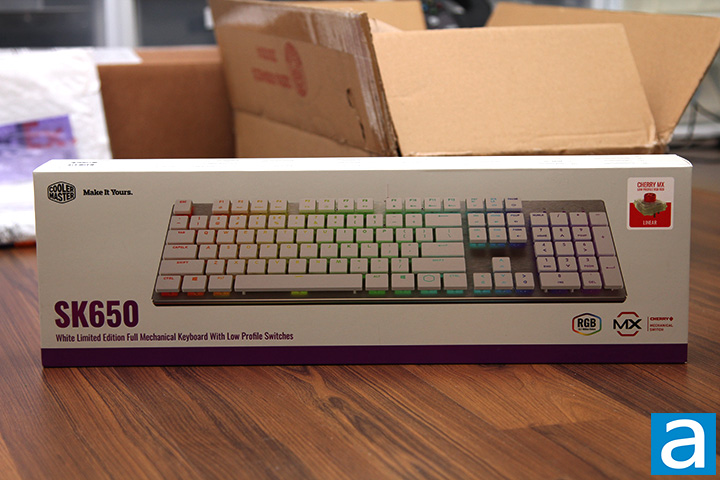 Our review unit of the Cooler Master SK650 White Limited Edition came in a large brown corrugated cardboard box from Cooler Master's American headquarters in Brea, California, USA. The keyboard was all that was inside the box, but we have received many more products from the company since then. Using FedEx International Ground, everything arrived in great condition to us here in Calgary, Alberta, Canada for our review today.