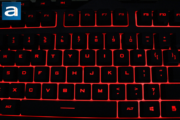 With all that in mind, let's turn off the lights and see what the MB24's real party piece is. As you can see in the photo above, the MB24 offers full backlighting of the entire keyboard, in the color you have purchased. As I have said, blue and green options are also available at the same price. Overall, the backlight is evenly distributed for the main set of keys. The only keys that are not so even in lighting are the media keys. To activate the lights, you will have to press the Scroll Lock button, which means the party lights will only be on when Scroll Lock is on. Generally, this is not a big deal, as most users do not even know what the Scroll Lock is used for. Back in the days, it allowed users to scroll with arrow keys. It was quite useful considering during the DOS era, as screen output was limited to a length of 80 characters by 25 rows deep. Thankfully, this has changed, and this key is almost obsolete. One of the few purposes left of the key is in Microsoft Excel. The Scroll Lock key allows users to pan around the spreadsheet without moving your selected cell.