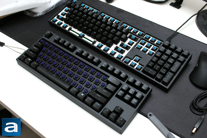 Before continuing on, one of the best part of the Cooler Master Storm NovaTouch TKL is its key switches. This section has been adapted from Jonathan’s Thermaltake Tt eSPORTS Meka G-Unit review in October 2011. There are three main types of keyboards in the market today. The cheapest is the membrane keyboard, which is the easiest to make, but also has poor typing feel and response due to squishy keys. A scissor switch keyboard has its own independent key switch mechanism for each key, which delivers improved tactile response and typing experience. Modern scissor switch keyboards can be very good for everyday office use. Mechanical keyboards cost the most, because each key switch is an independent part.